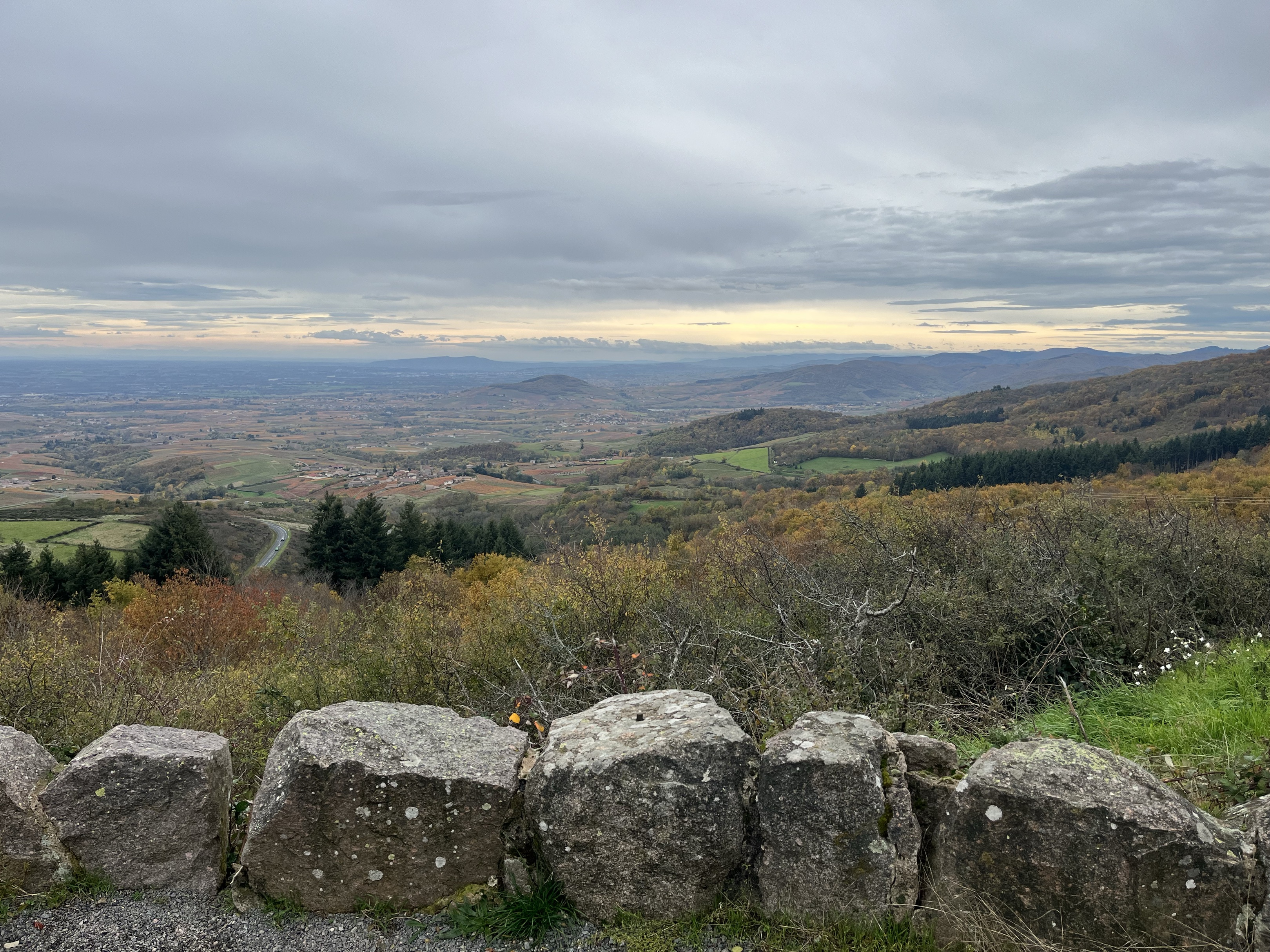 Puis à partir du col des Fûts d’Avenas et le reste des voies du beaujolais empruntées: petites routes (attention par temps humide et automnal)