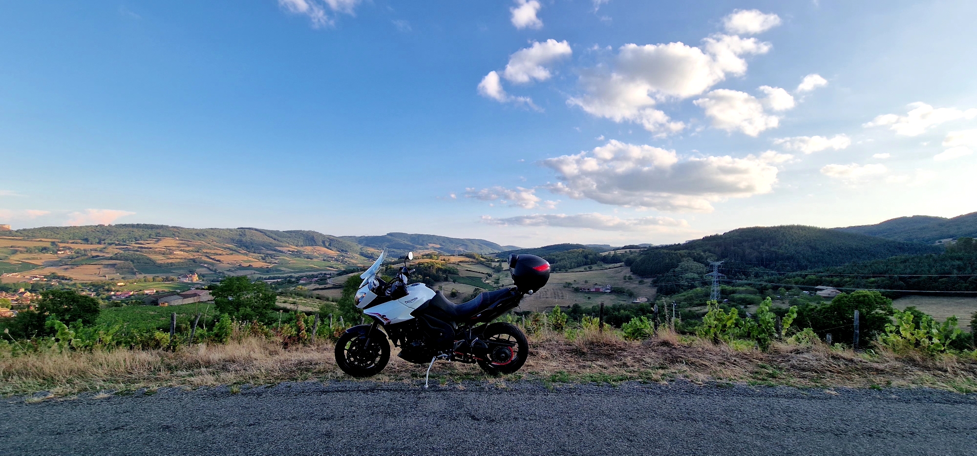 Tu aimes les balades sur les petites routes de campagne avec des revêtements en bon état, beaucoup de virage, de beaux paysages vallonnés travers vignobles et forêts, de jolis points de vue ? Ce road-trip dans le Beaujolais te plaira ! Par beau temps les peysages seront sublimés.