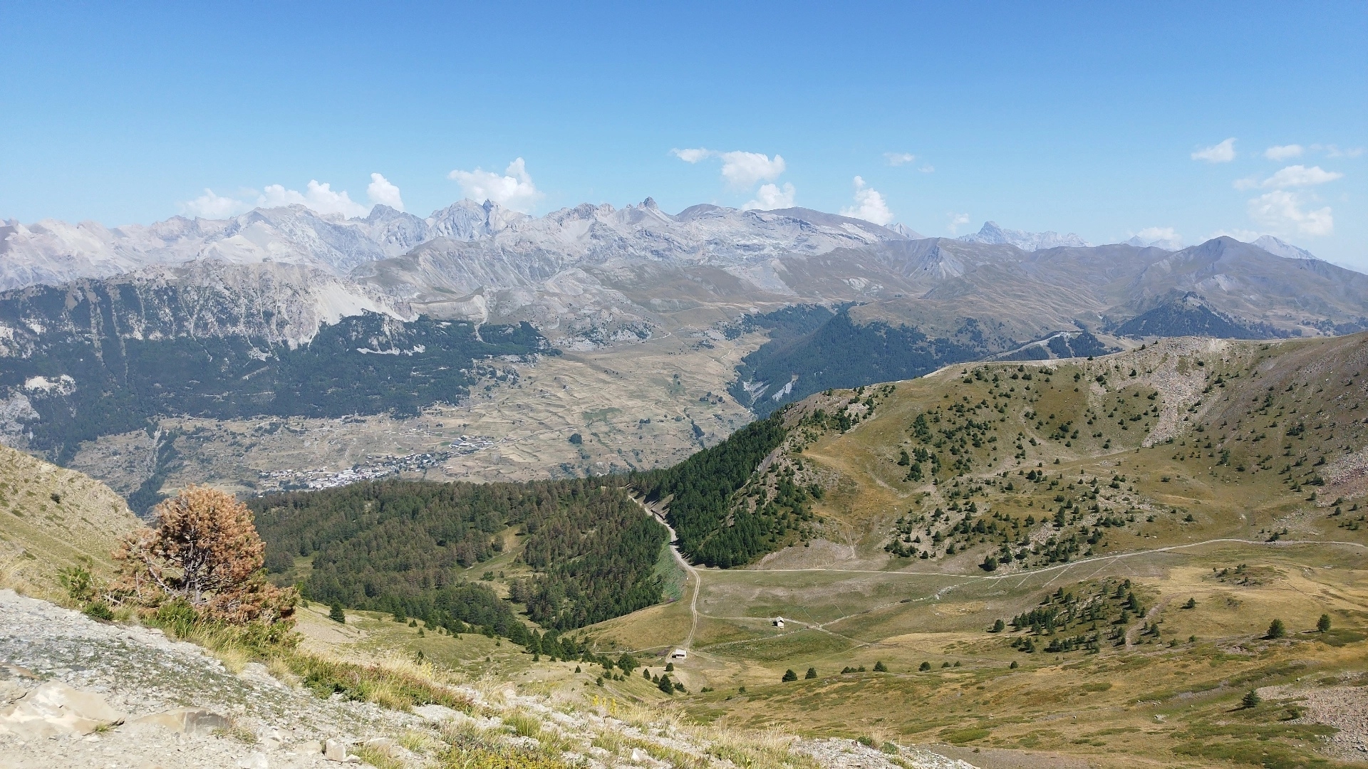 Prendre le col de vars, dans vars prendre l'accès au piste et monter a la liaison Risoul vars, vous serez a 2500 m d'altitude, ensuite redescendre toujours sur piste direction St André d Embrun a travers de belle forêt de pins.