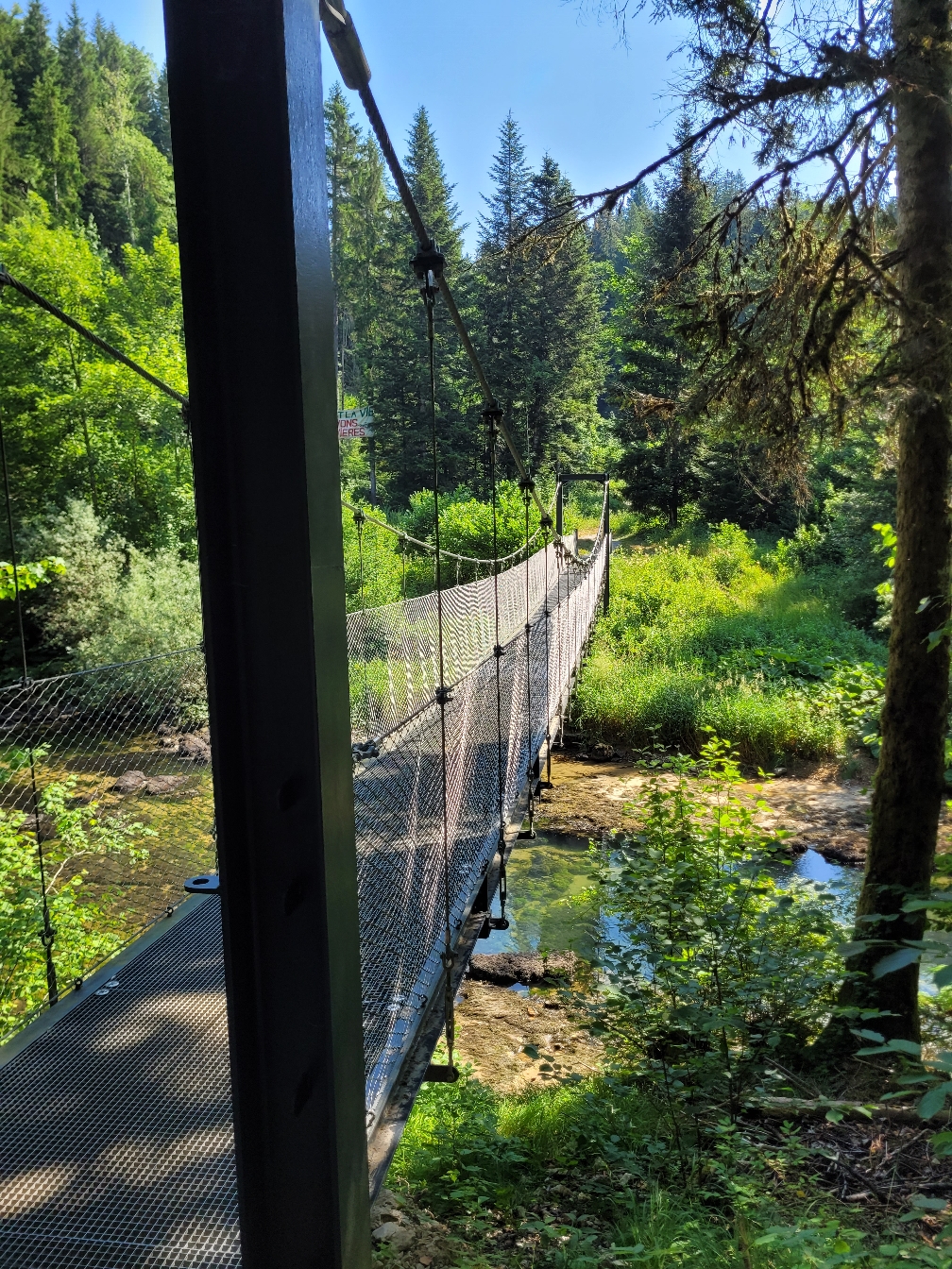 Pause-café à Mouthe, puis continué jusqu'au parking de la Source de l'Ain. Petite marche d'une heure et demie pour faire la "boucle des passerelles" (5 km) jusqu'à la source, le moulin du Saut et le saut des Maillys.