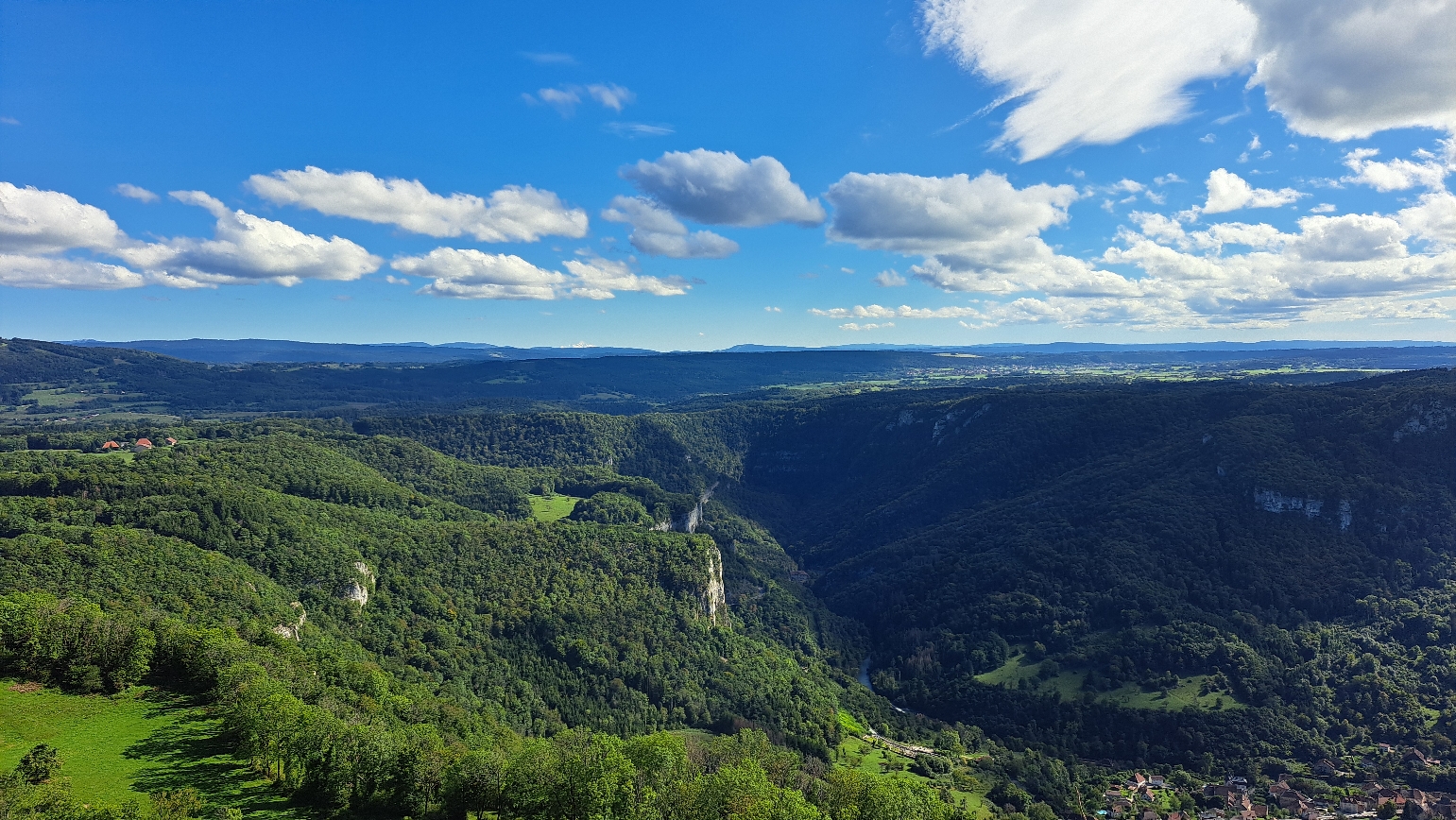 Balade au départ de Besançon direction Hautepierre le Chatelet et son belvédère vertigineux. Le tracé n'est pas direct, histoire de profiter d'un maximum de virages, avant de se poser en terrasse à Ornans. Vous reprendrez la route pour prendre de la hauteur et vous stationner vers l'église de Hautepierre, ou vers le cimetière. Une petite marche de 500m pour en prendre plein les yeux. L'idéal, on l'a fait vers 16h30 début septembre, la bonne lumière et un ciel dégagé pour voir le Mont Blanc en fond de tableau. Magique.