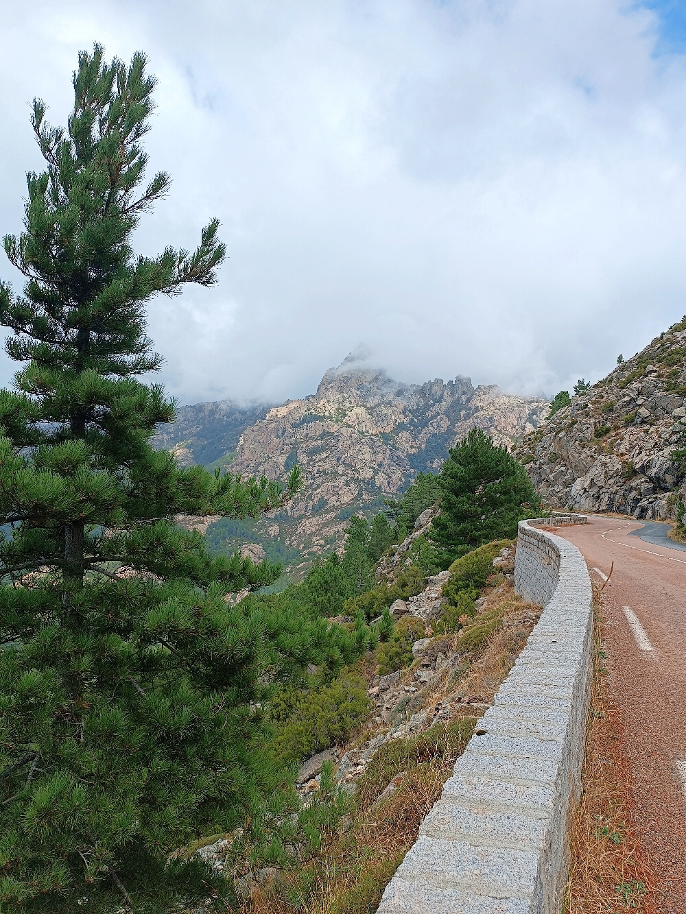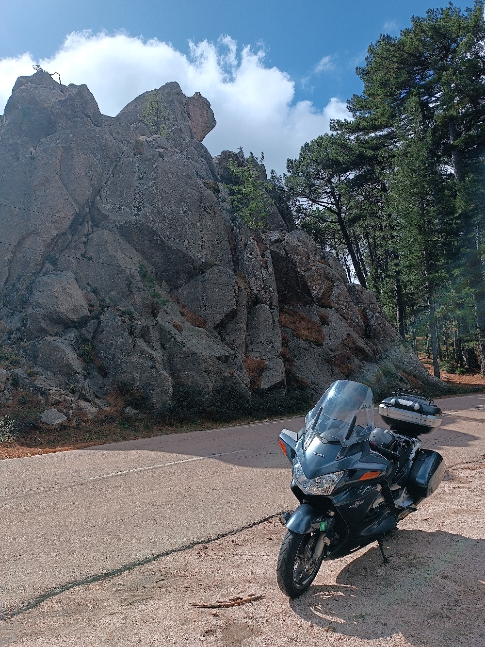 Temps un peu bouché et petite pluie par endroit en altitude. Route bien sympa avec de belles épingles , un peu sur des œufs sur certains portions avec la route humide et les épines de pins bien glissantes en forêt !!