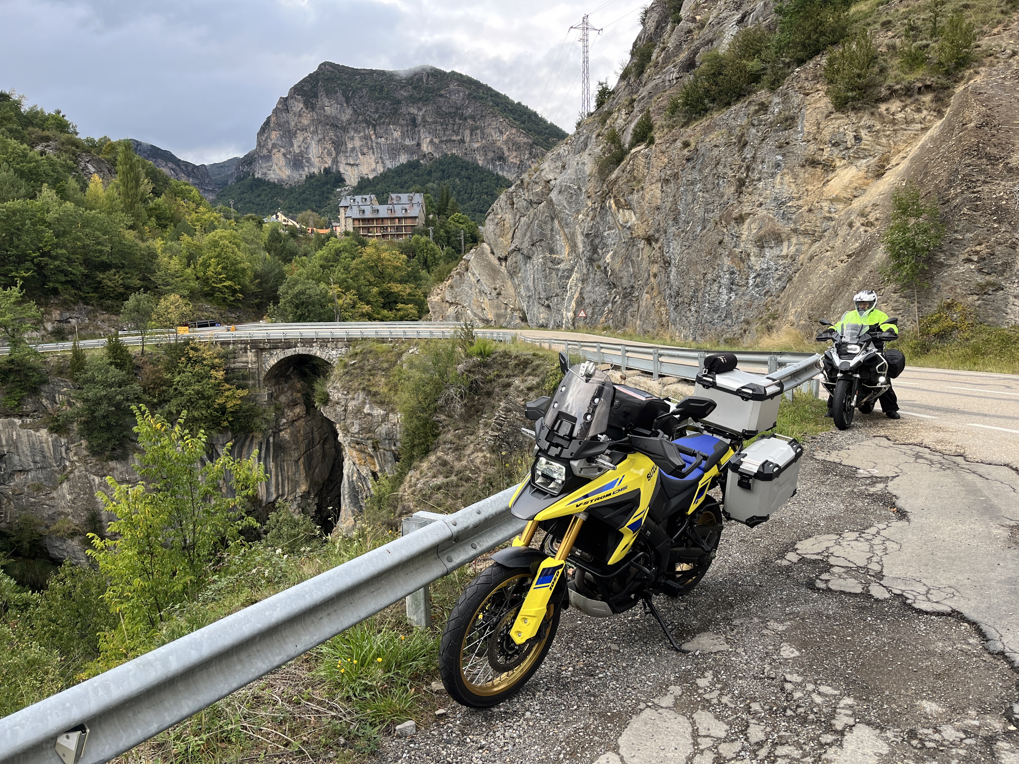 Depart d’Hendaye et joindre St Jean de Luz par la corniche. Être patient jusqu’à Saint Jean Pied de Port, c’est chargé et ça roule mal. De là rejoindre Roncesvalles puis Burgi puis conserver un rythme dynamique mais vigilant car ces routes sont superbes et distillent un veritable plaisir de conduite. On termine par la montee à Panticosa, cul de sac perché à 1640 metres d’altitude dans un recoin de montagne. Une superbe journée malgré un temps pluvieux.