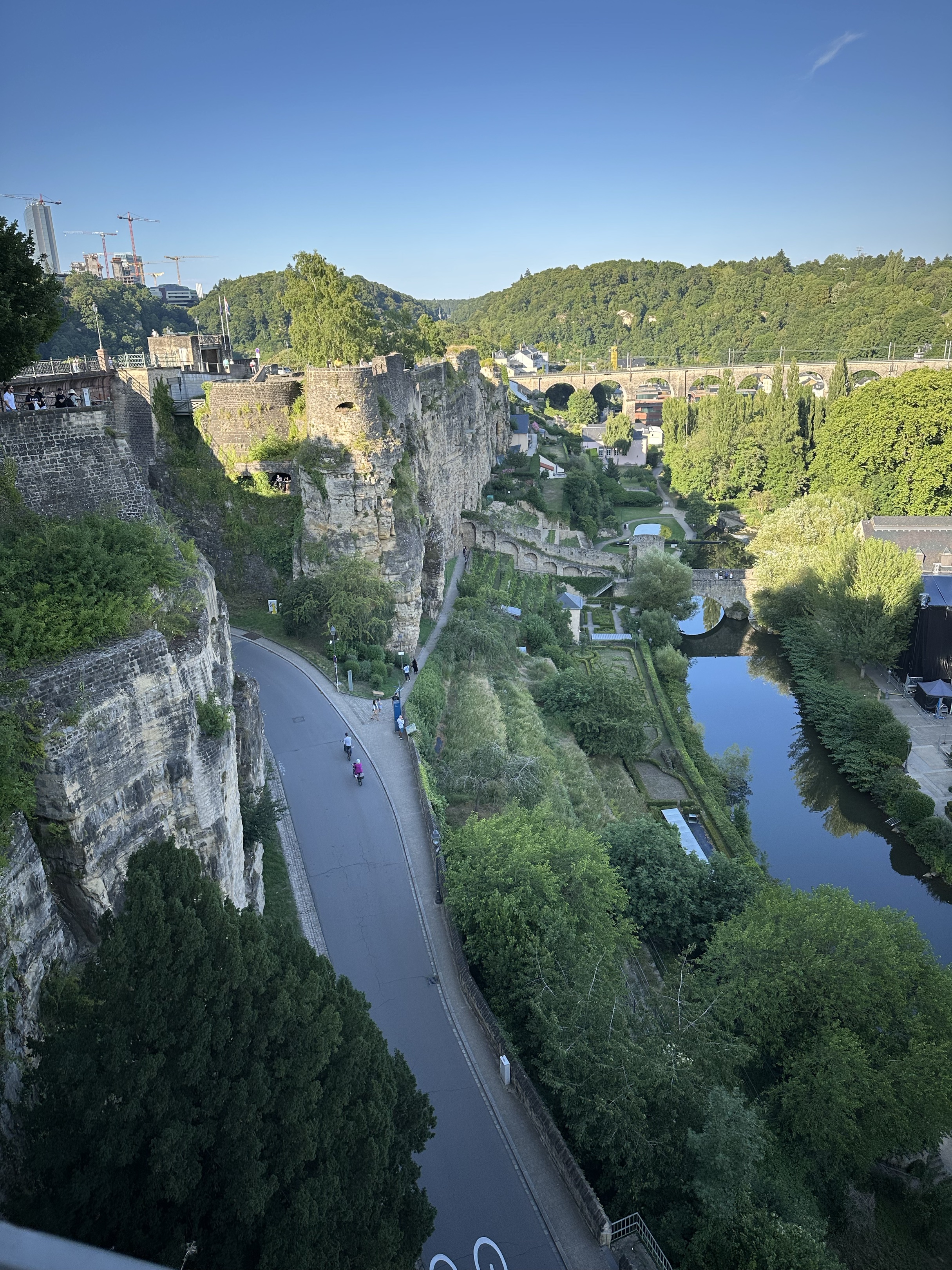 Une petite virée sympa qui permet de passer dans le vieux Luxembourg, avec une superbe vue sur le grund . N’hésitez pas à vous arrêter en haut de la rue large pour boire un verre sur la terrasse du plus ancien pub de la capitale luxembourgeois, Ennert de Steiler et admirer le paysage un peu plus bas. Retour via Rémich et les vues sur la Moselle.