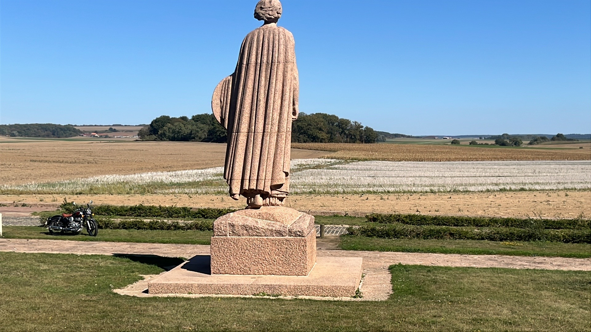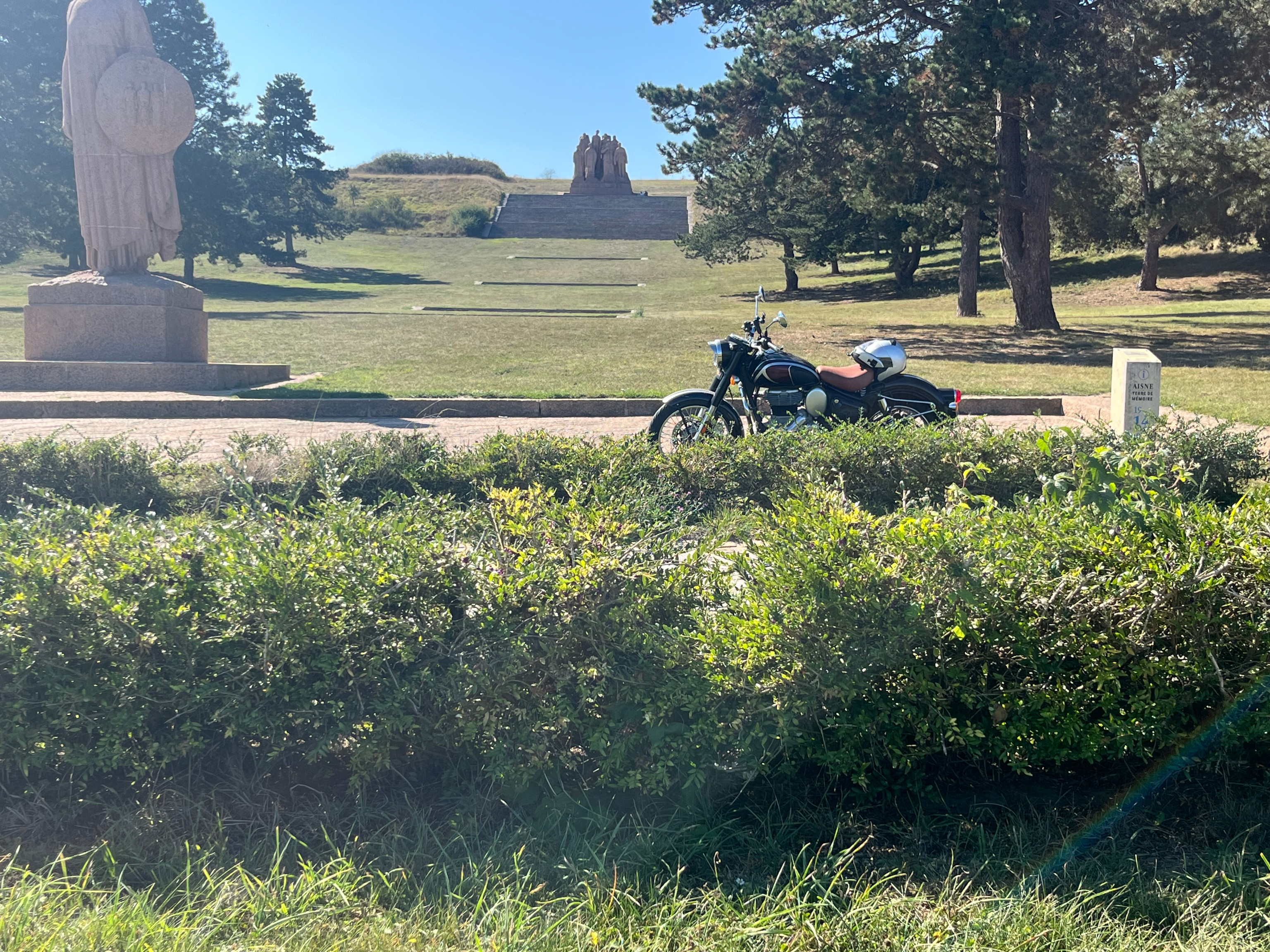Touren in een landelijke omgeving van wijngaarden, bossen en akkers, op weg naar een opmerkelijk monument ter herinnering van de eerste wereldoorlog in Oulchy-le-Chateau. Beeldengroep gesculpteerd door Landowski, vooral gekend voor zijn Christus in RIo de Janeiro.