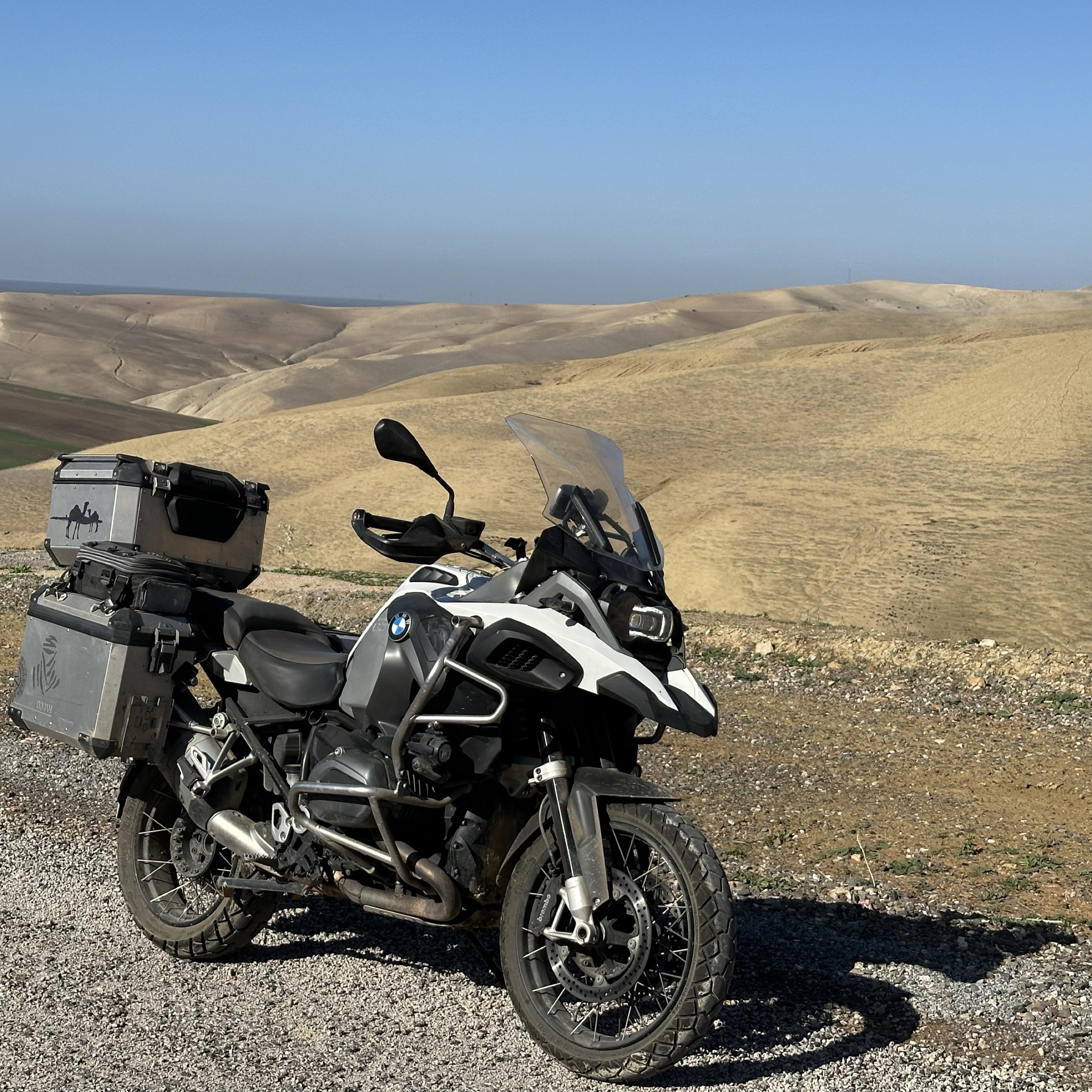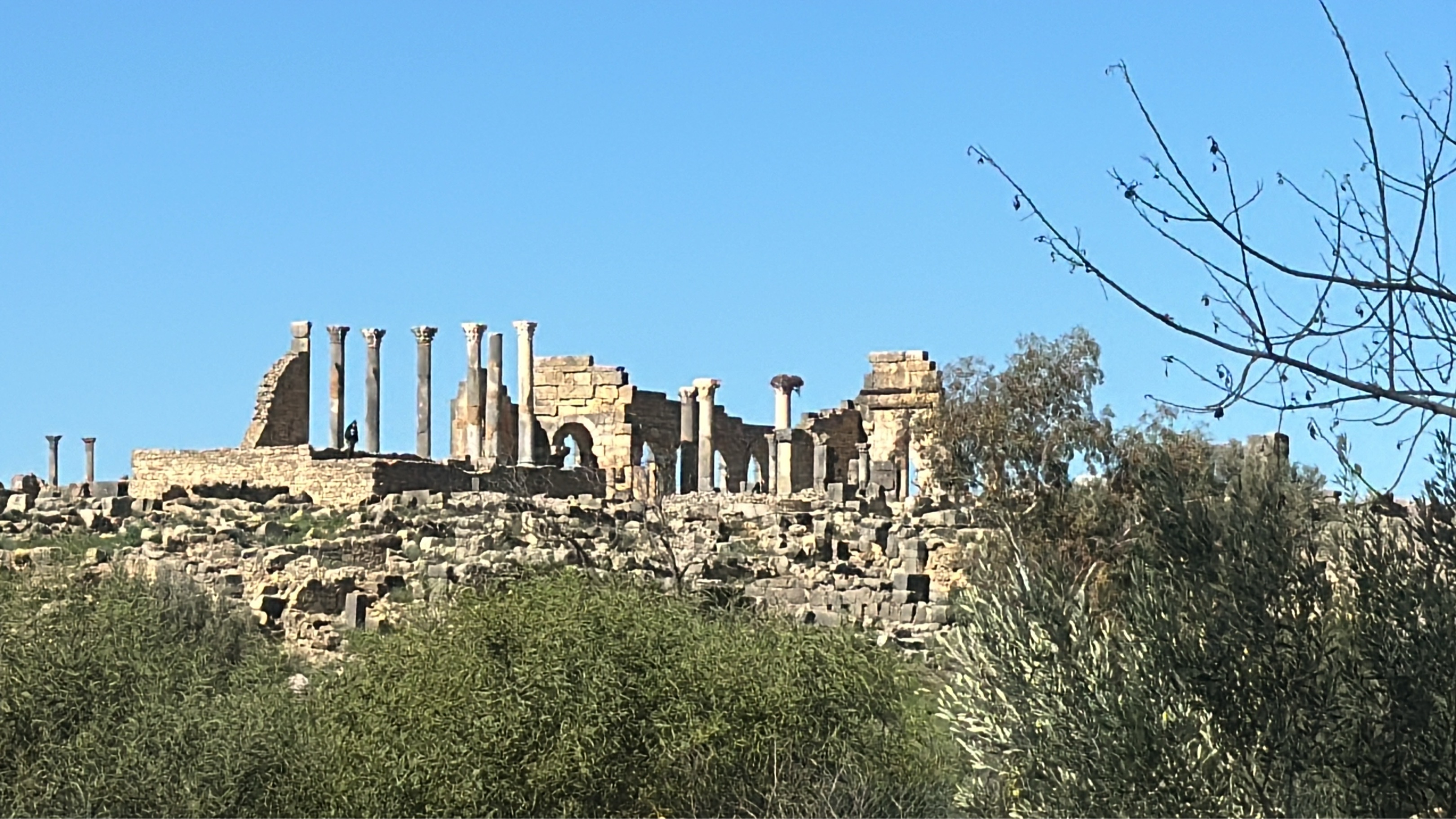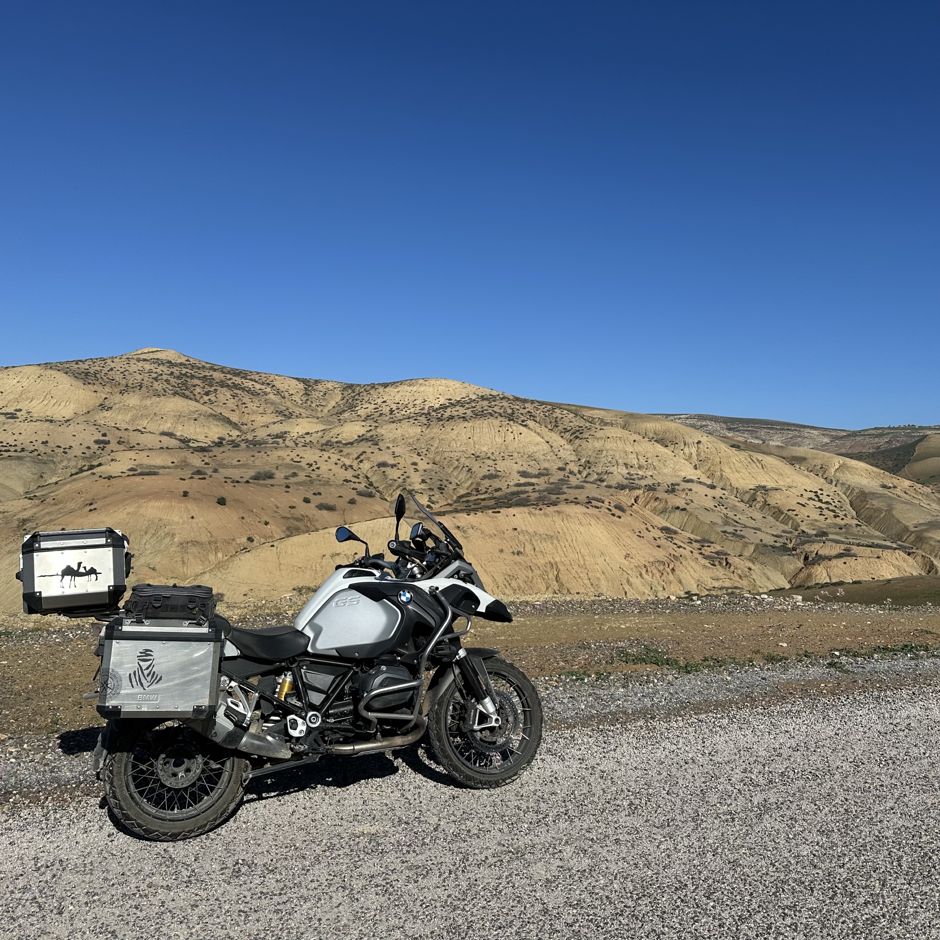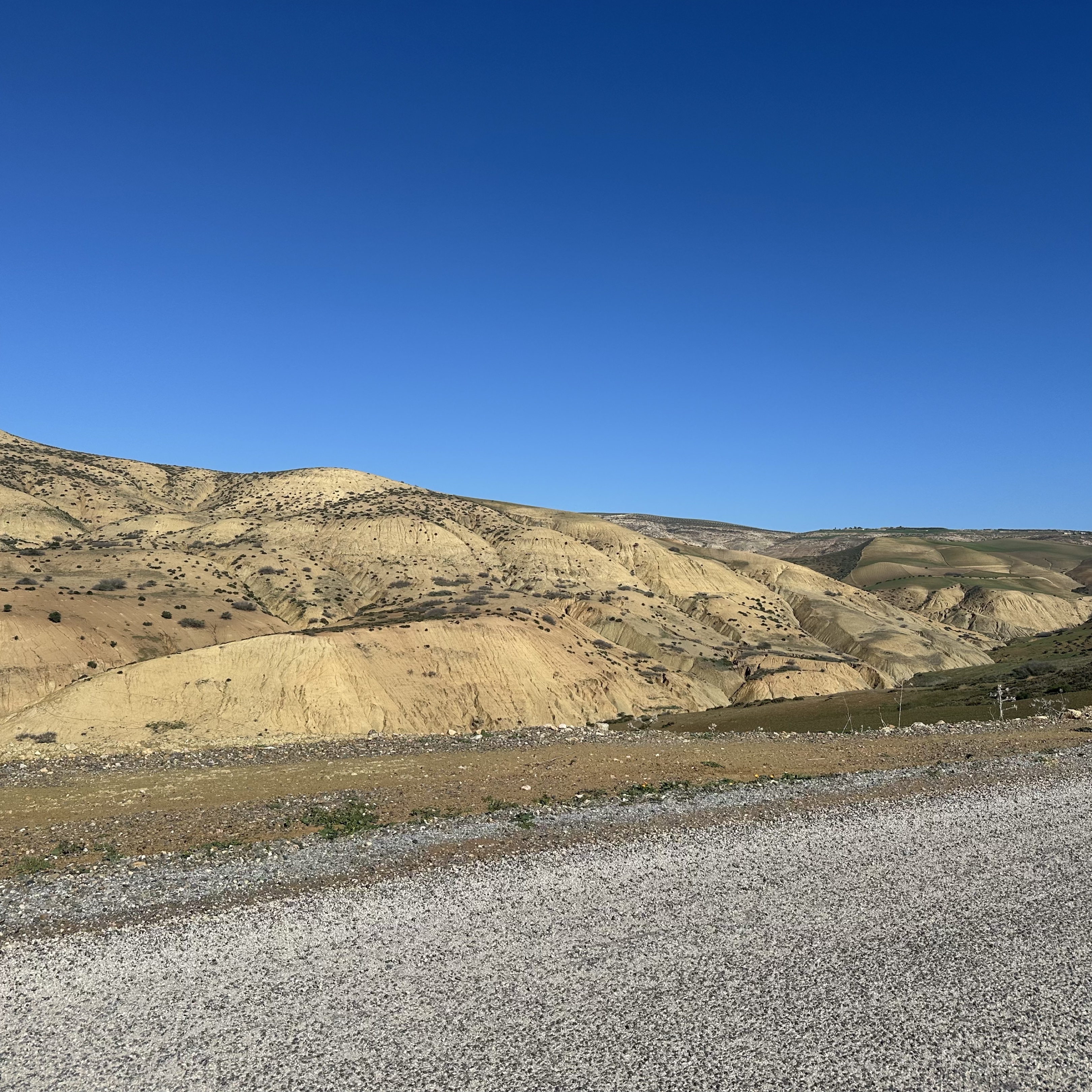 Par les pistes hors agglomération une belle virée de 200 km de Rabat à Volubilis. Toutes un peu défoncées mais praticable en dehors de périodes de pluie. Avec de magnifiques paysages sur les montagnes dessinées par les pluies et l’érosion. Sinon attention à la piste défoncée