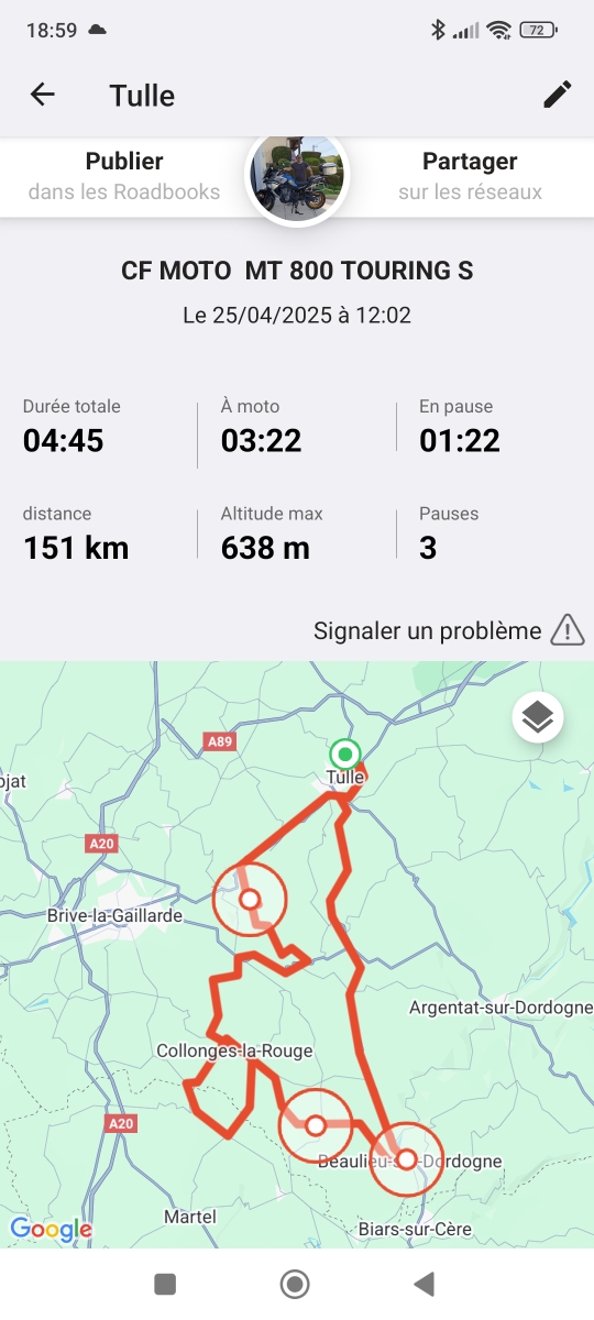 De superbes paysages, par contre des petites routes. Je roule en trail, donc nickel. Beaucoup de coins photos, et de nombreux points de vue sur la Corrèze et la Dordogne. Certaines routes peuvent être barrées, donc choisir un autre itinéraire. Les routes sont étroites par endroits et ne sont pas faites pour la vitesse.