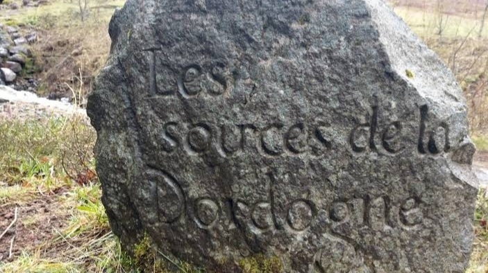 Partir de la source de la Dordogne au pied du Sancy coté Mont-Dore jusqu'au Bec d'Ambès point de confluence entre la Dordogne et la Garonne, qui marque le début de l'estuaire de la Gironde.