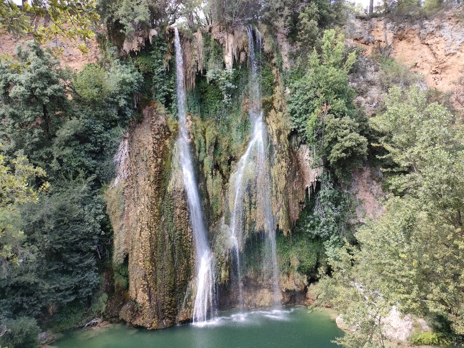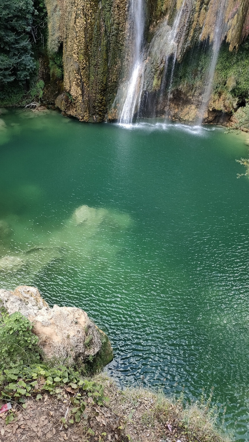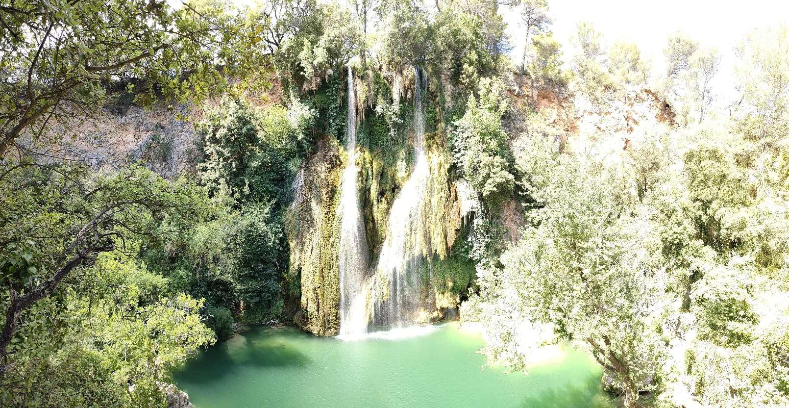 La cascade, par le point de vue ou directement au pied de celle ci en fonction du risque incendie l'été