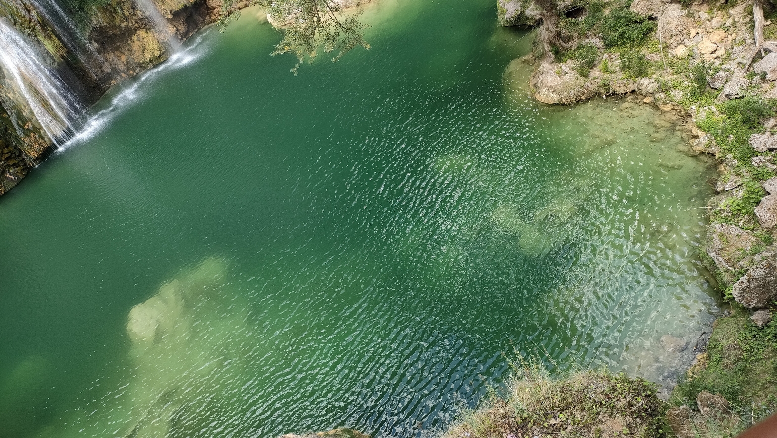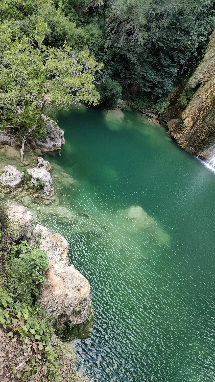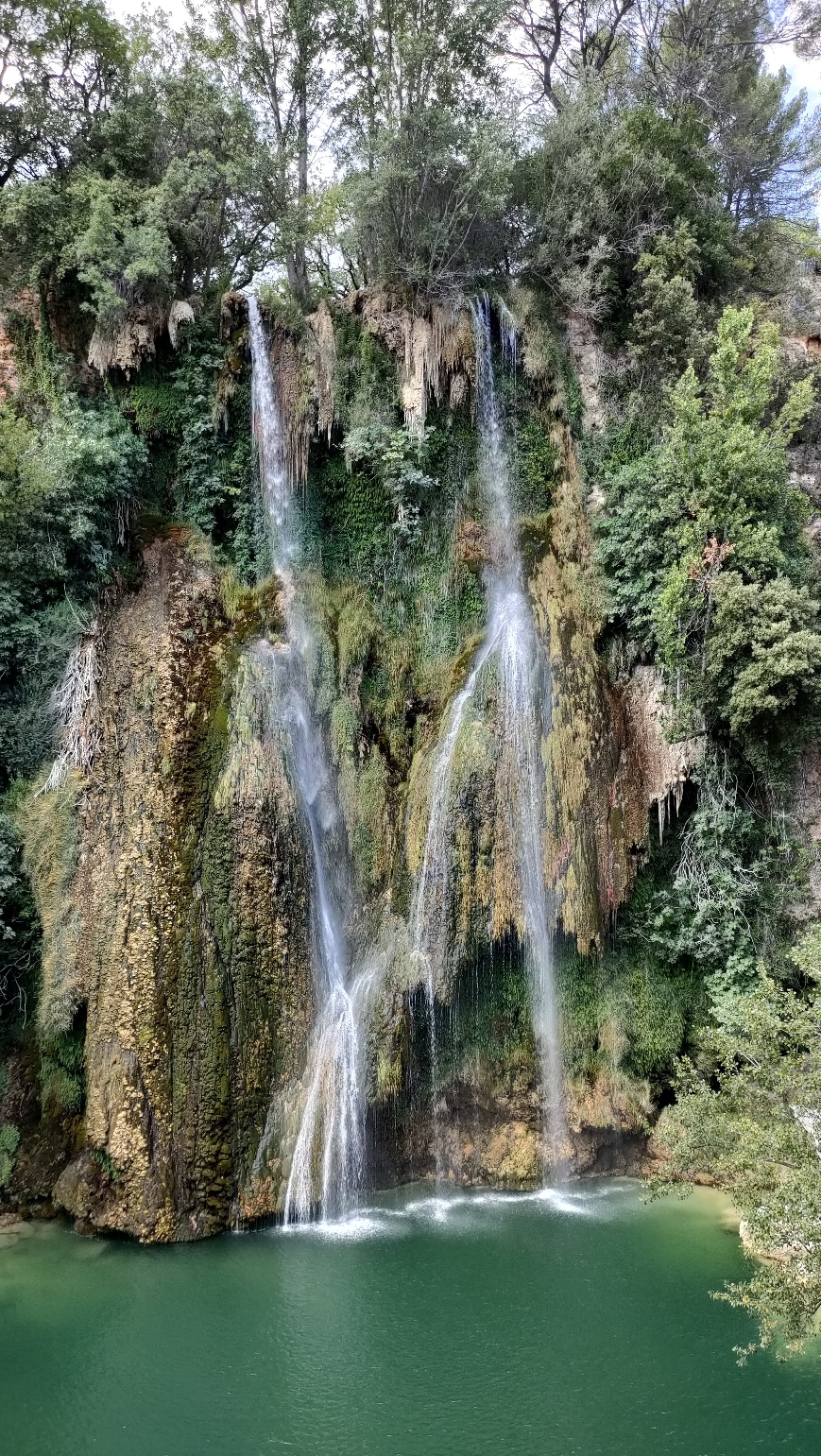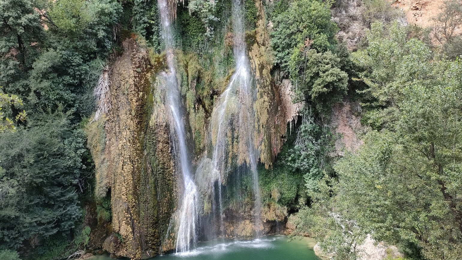 La cascade, par le point de vue ou directement au pied de celle ci en fonction du risque incendie l'été