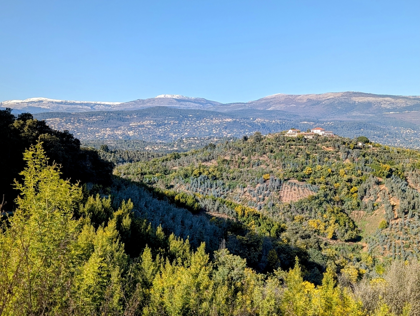 La route des mimosas part de Bormes les mimosas, jusqu'à Tanneron. Faites la dans ce sens, vous profiterez de points de vue magnifiques sur la Méditerranée, le massif de l'Estérel avec en fond les sommets des Alpes enneigées, et encore le magnifique massif de Tanneron.