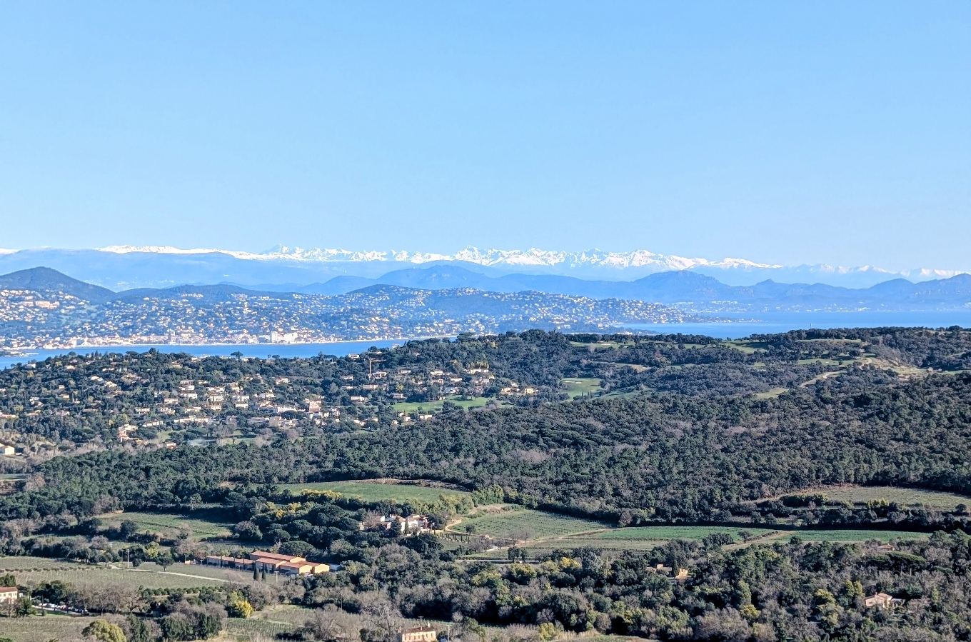 Village de Bormes les Mimosas. Gassin, et à côté les marines de Cogolin. l'Estérel et ses magnifiques vues sur les sommets enneigés. Le massif de Tanneron avec ses jolies couleurs mimosas