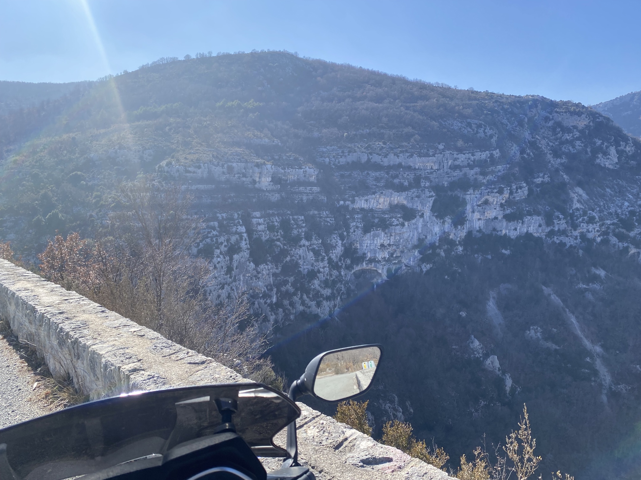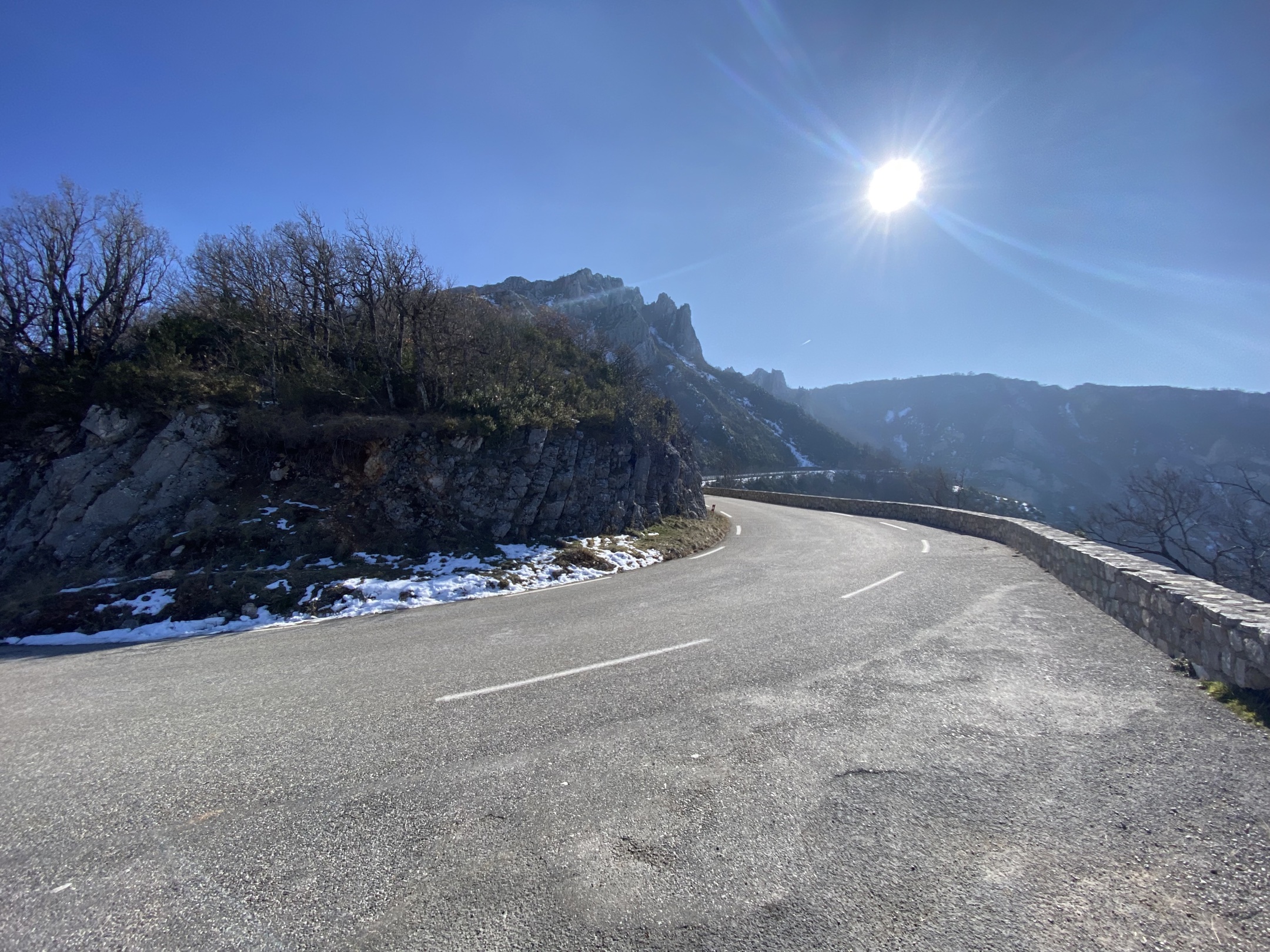 La route est superbe, sinueuse à souhait, elle traverse le camp militaire de Canjuers, les paysages sont magnifiques, la route longe l’Artuby qui est superbe lorsqu’il coule.