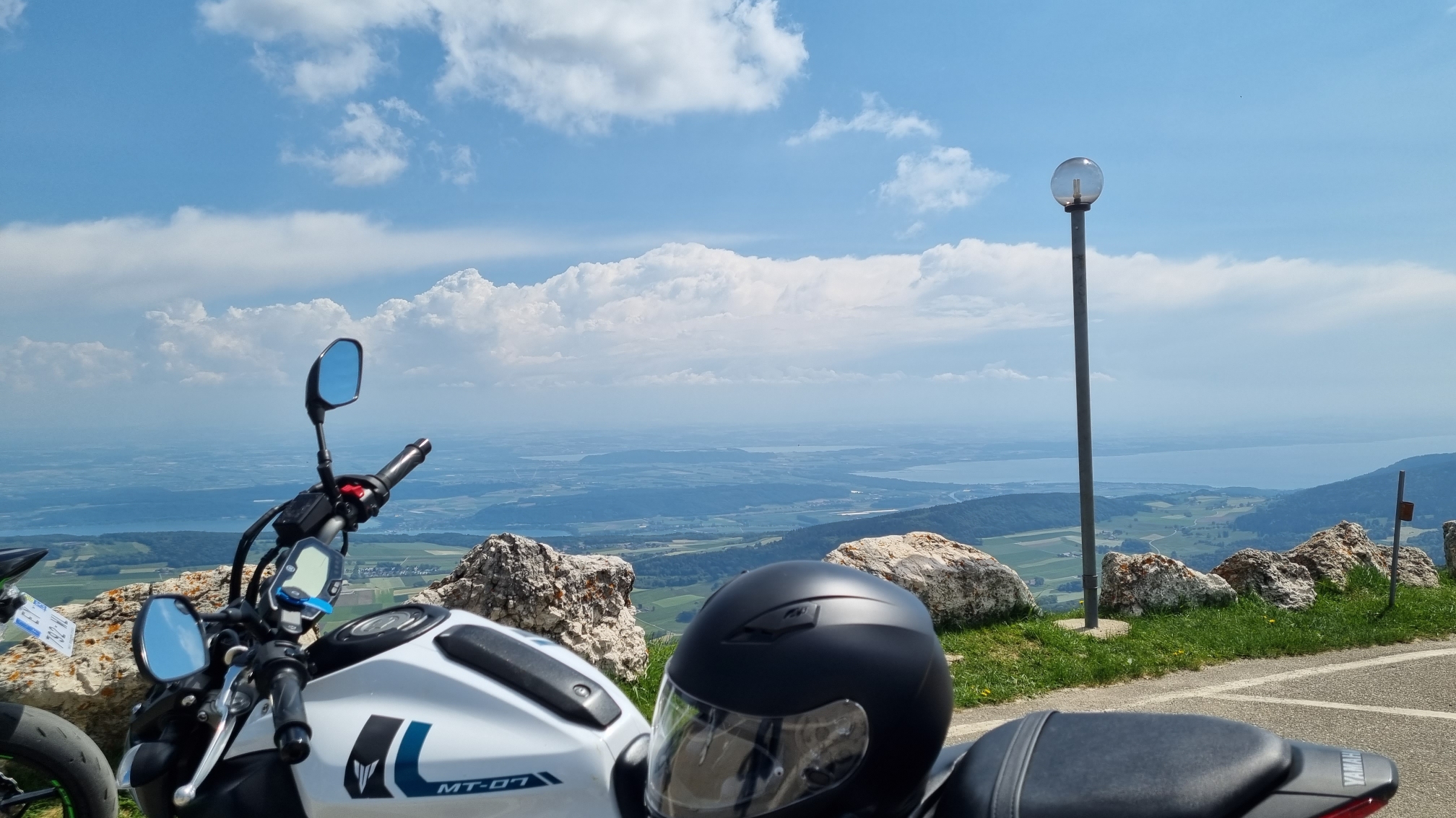 Petite balade en Suisse avec un point du vue depuis la vue des Alpes sur le lac de Neuchâtel ( restauration possible), puis direction le Chasseral avec cette fois-ci un point de vue sur la vallée du Doubs d'un côté et le lac de Bienne de l'autre. Pour finir descente vers biaufond pour un retour dans le Haut-Doubs. De belles route avec quelques beaux virages sauf un partie mais qui reste bien praticable.